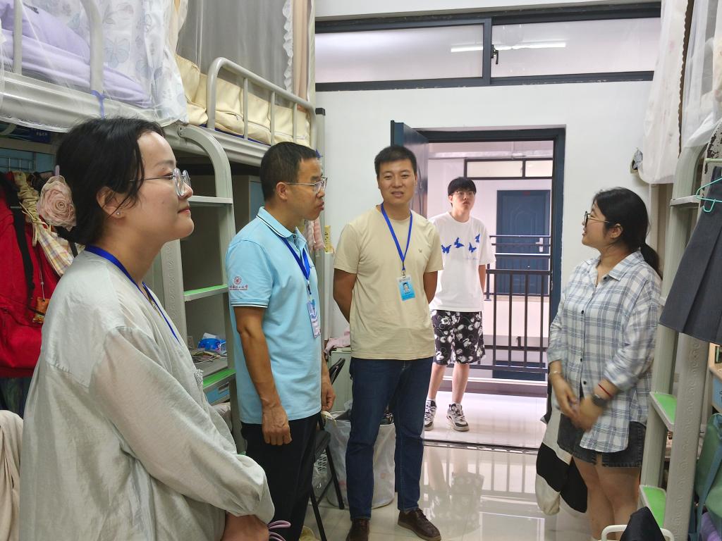 发展的基石,容不得丝毫马虎。相关人员要进一步提高安全意识,落实安全责任,对排查出的问题要跟踪整改到位,确保假期校园安全稳定。在深入宿舍走访时,排查小组提醒各位同学假期出行要注意交通安全,选择正规交通工具;在宿舍要严格遵守用电用水规定,不使用违规电器;离开宿舍时,要关闭电源、水源,锁好门窗,做好个人财物保管。若遇到可疑情况或安全问题,及时与老师或学校保卫部门联系。走访宿舍过程中,检查小组还提前为同学们送上了中秋祝福。