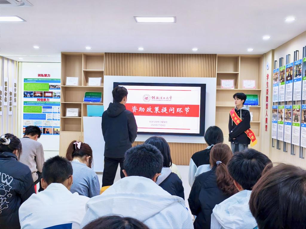 活动伊始,学校学生资助宣传大使陆鹏飞对学校资助育人实践基地的功能和作用进行了全面介绍,为同学们搭建了一个全面了解资助政策的平台。随后,何灿丽、韦砚俊、杨兰雨等3位同学对国家和学校的各项资助政策进行了深入解读,内容涵盖奖学金、助学金、国家助学贷款、勤工助学、参军入伍及基层就业学费补偿贷款代偿、学费减免等多种形式的内容,为大家答疑解惑。