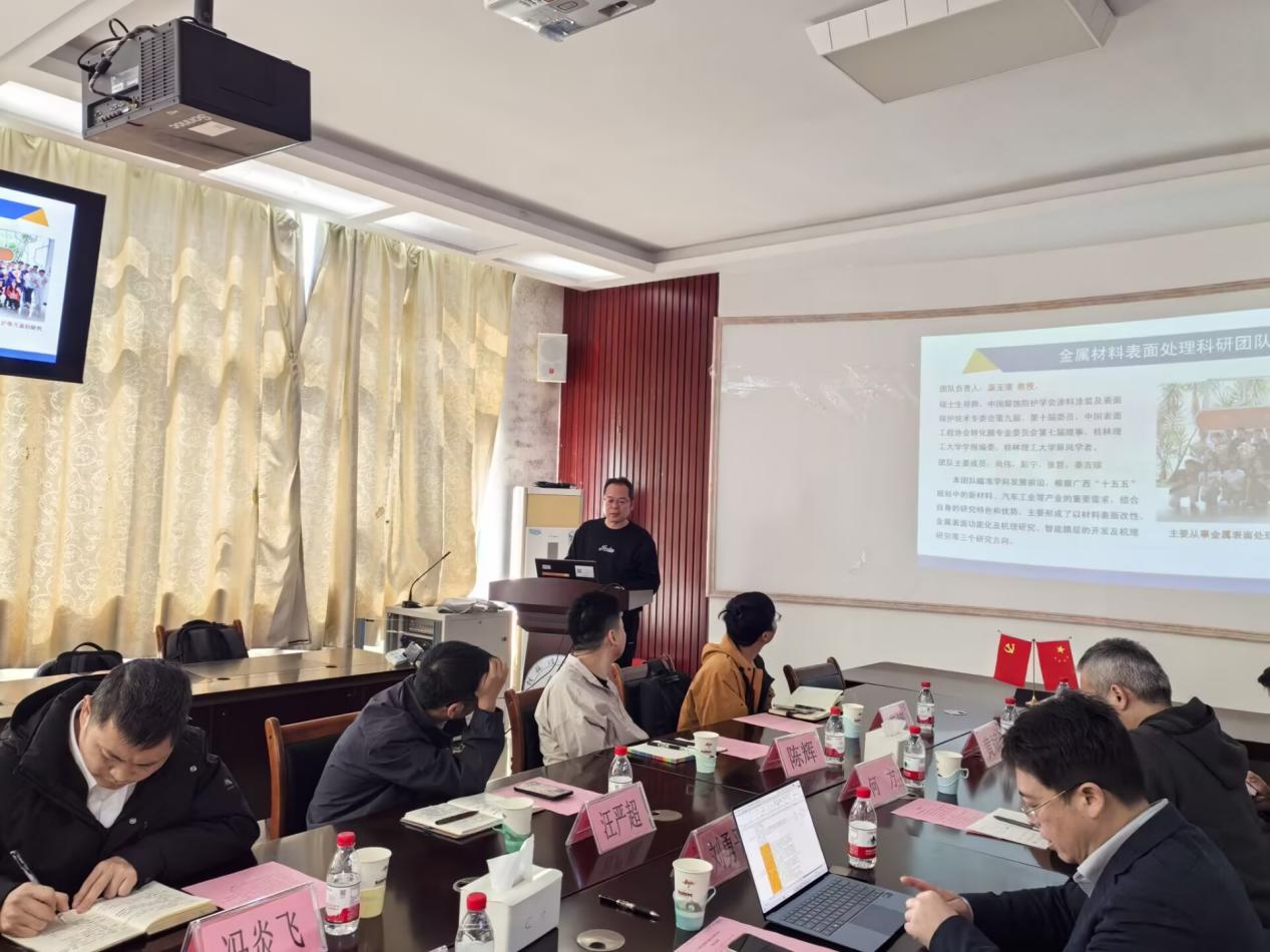 科技处副处长刘勇平主持。刘勇平首先对广西华友新材料有限公司一行的到来表示热烈欢迎,并简要介绍了学校在科技创新和社会服务方面的基本情况。他指出,校企合作是推动科技成果转化和服务地方经济发展的重要途径,期待双方以此为契机,建立长期稳定的合作关系。