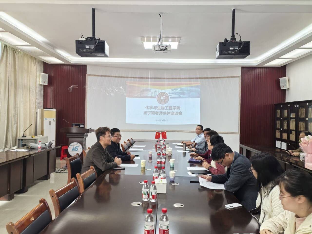 领导班子全体成员、应化教研室教师代表齐聚一堂,共同回顾唐宁莉老师执教生涯的感人点滴,送上美好祝福。座谈会由日本三级
